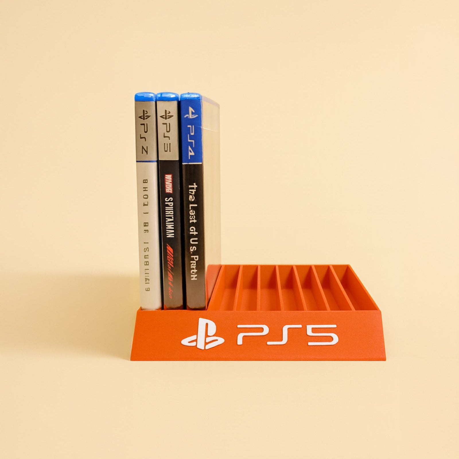 Engineered specifically for PS5 game cases, this stand accommodates up to 10 physical game titles in a sleek, space-efficient vertical arrangement. 3D printed using premium PLA with precision FDM technology, each slot is carefully calibrated to hold PS5 cases securely without creating pressure marks or scratches on the cover art you've come to appreciate.
