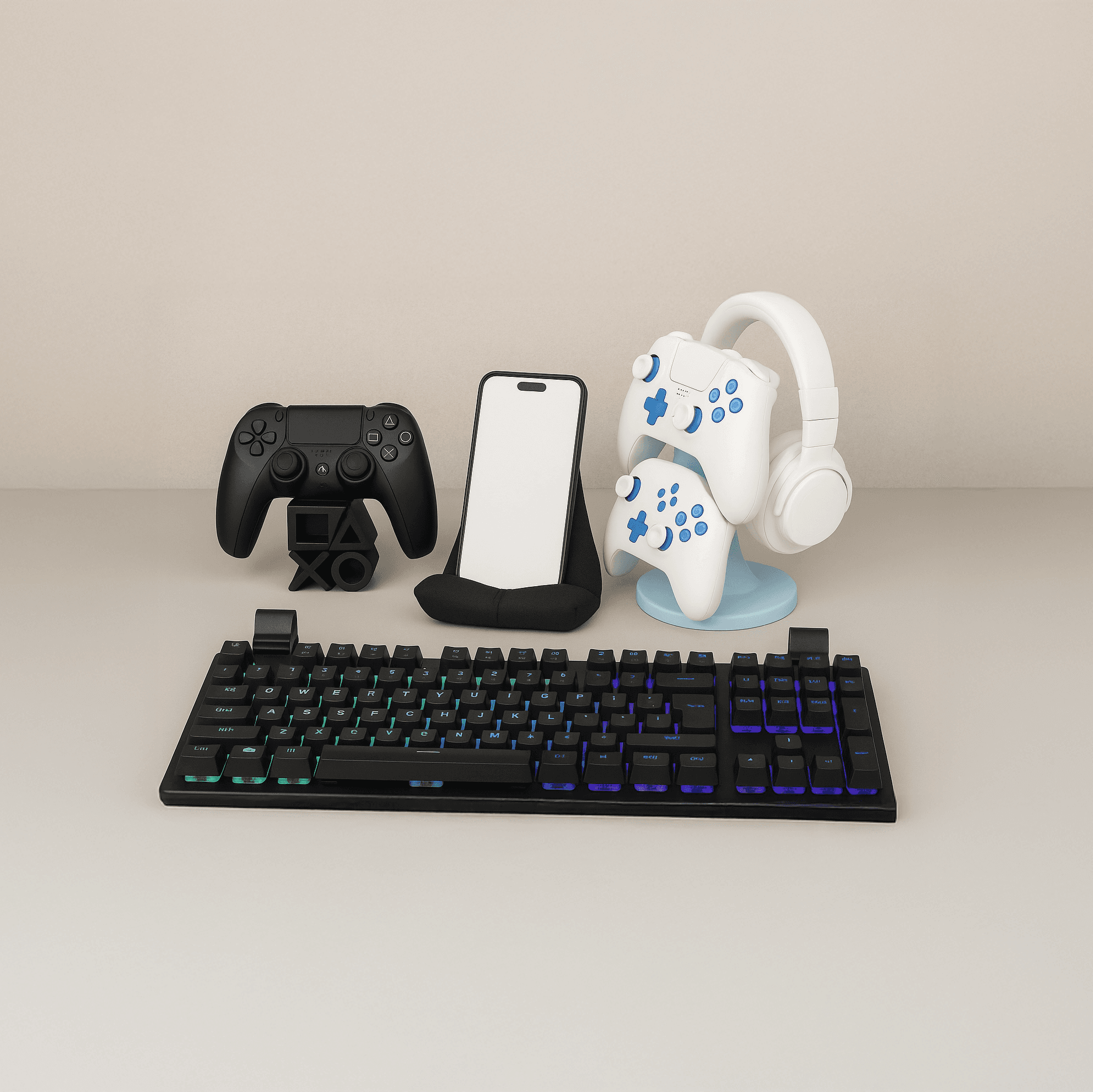 Keep your controllers charged, showcased, and neatly placed with this sleek dual-holder design.